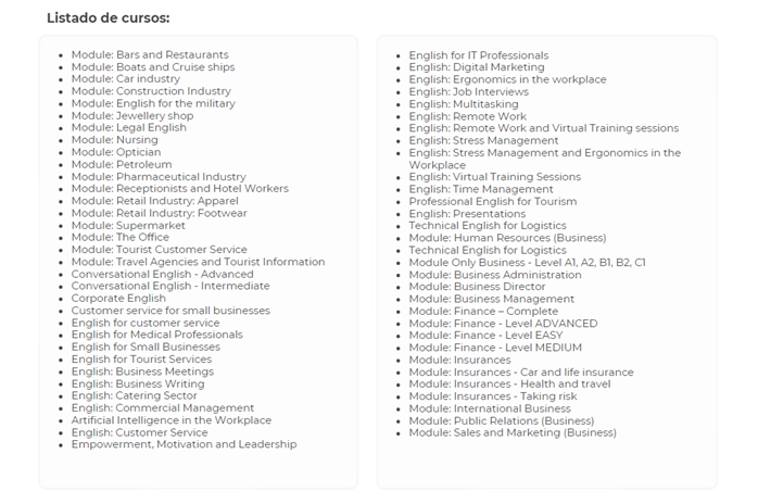 Multinivel y multicurso sin coste adicional. Cuando finalices el nivel o el curso puedes pasar al siguiente.